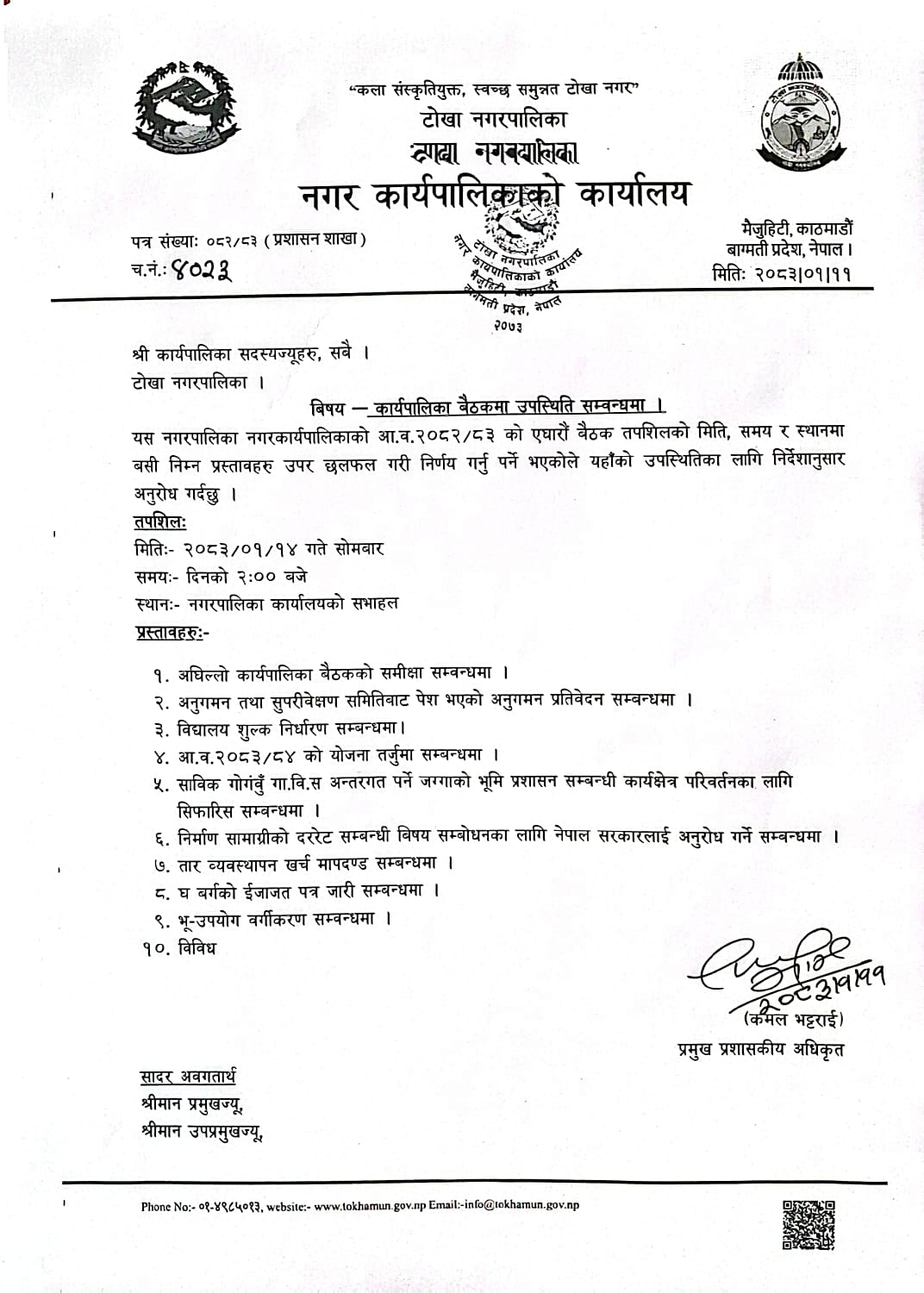 आ.व. २०८२-८३ को १२ औं कार्यपालिका बैठकमा उपस्थिति सम्बन्धमा