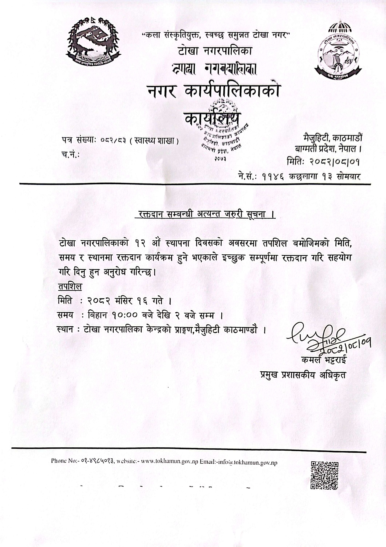टोखा नगरवासीहरुको लागि अत्यन्त जरुरी सूचना