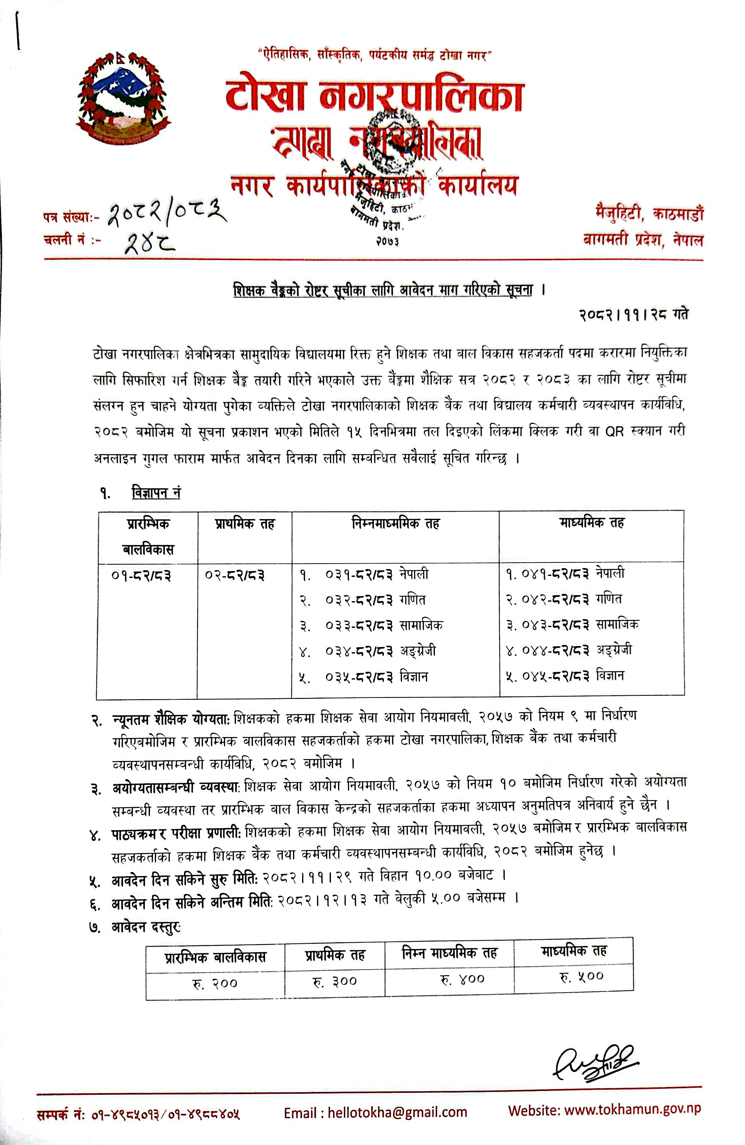शिक्षक वैङ्कको रोष्टर सूचीका लागि आवेदन माग गरिएको सूचना