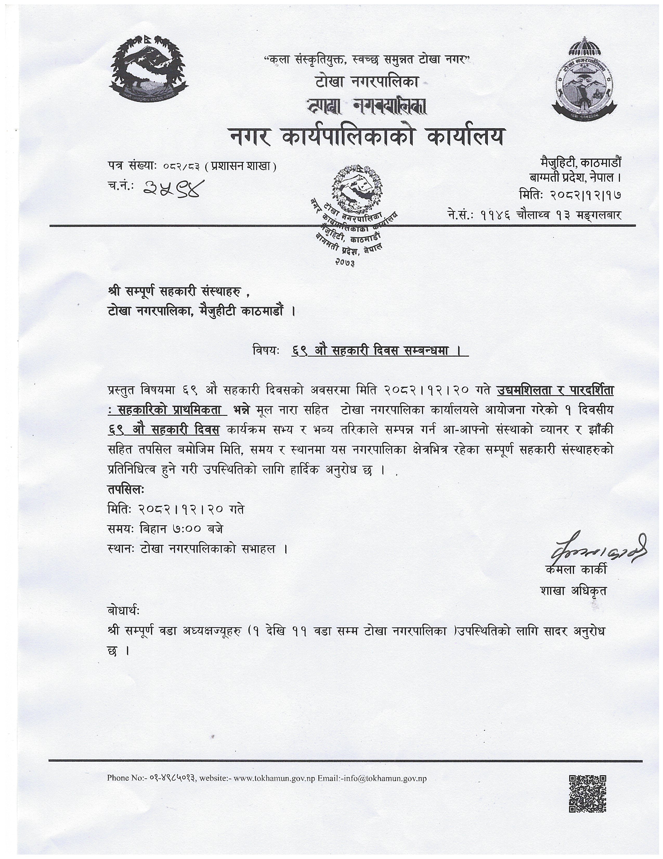 ६९ औं राष्ट्रिय सहकारी दिवस सम्बनधमा