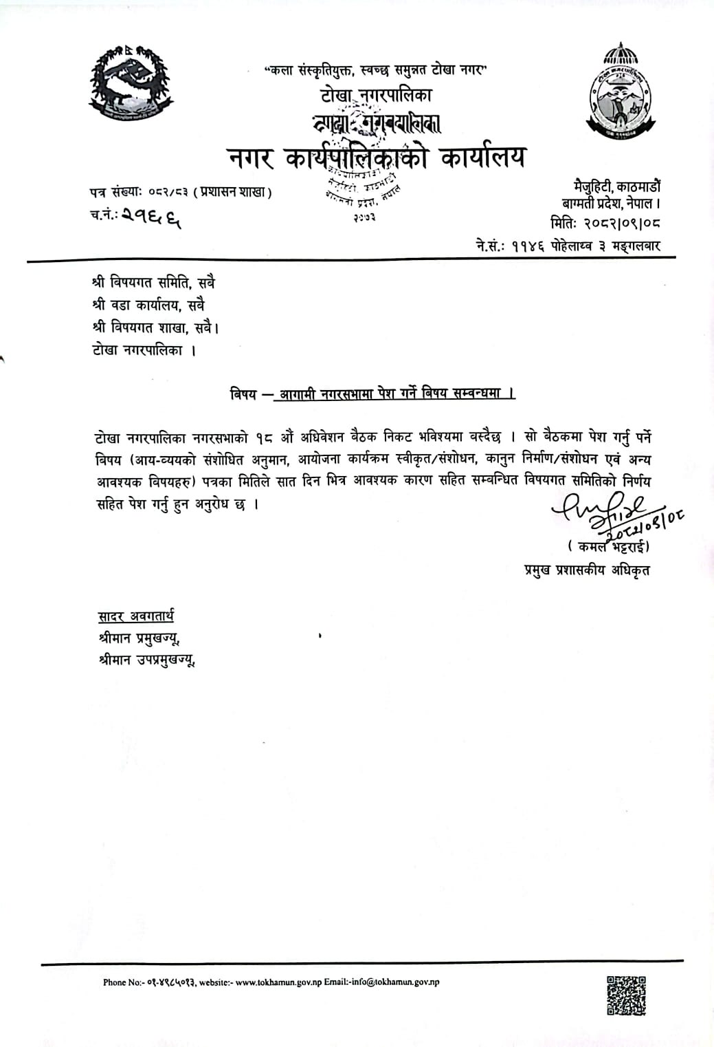 आगामी नगरसभामा पेश गर्ने विषय सम्बन्धमा