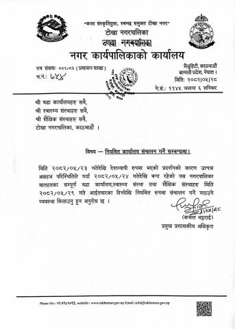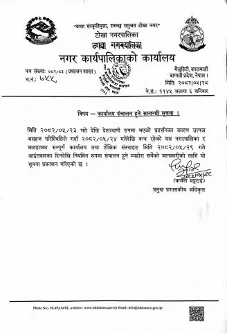 कार्यालय सञ्चालन सम्बन्धी सूचना !!!