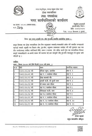 सार्वजनिक सूचना प्रकाशन गरिदिने सम्बन्धमा- श्री वडा कार्यालयहरु सबै