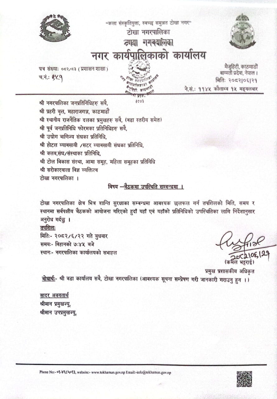 नगरपालिकाभित्र शान्ति सुरक्षा सम्बन्धमा छलफल कार्यक्रममा उपस्थिति सम्बन्धमा