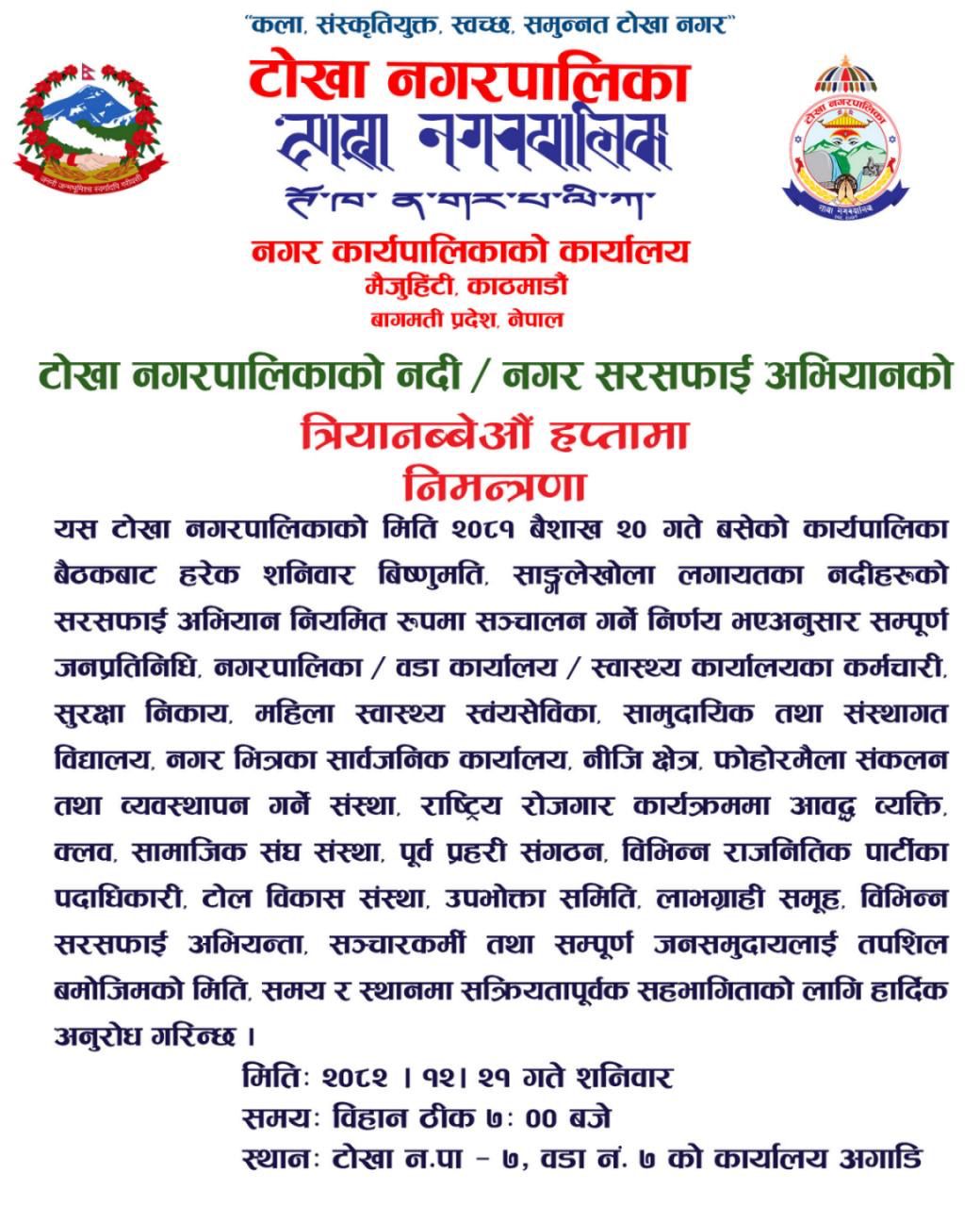 नदि सरसफाई अभियानको त्रियानब्बेऔं हप्तामा हार्दिक निमन्त्रणा