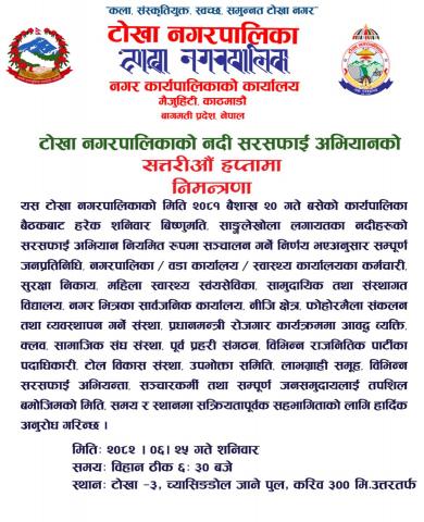 » नदि सरसफाई अभियानको ७० औं हप्तामा निमन्त्रणा
