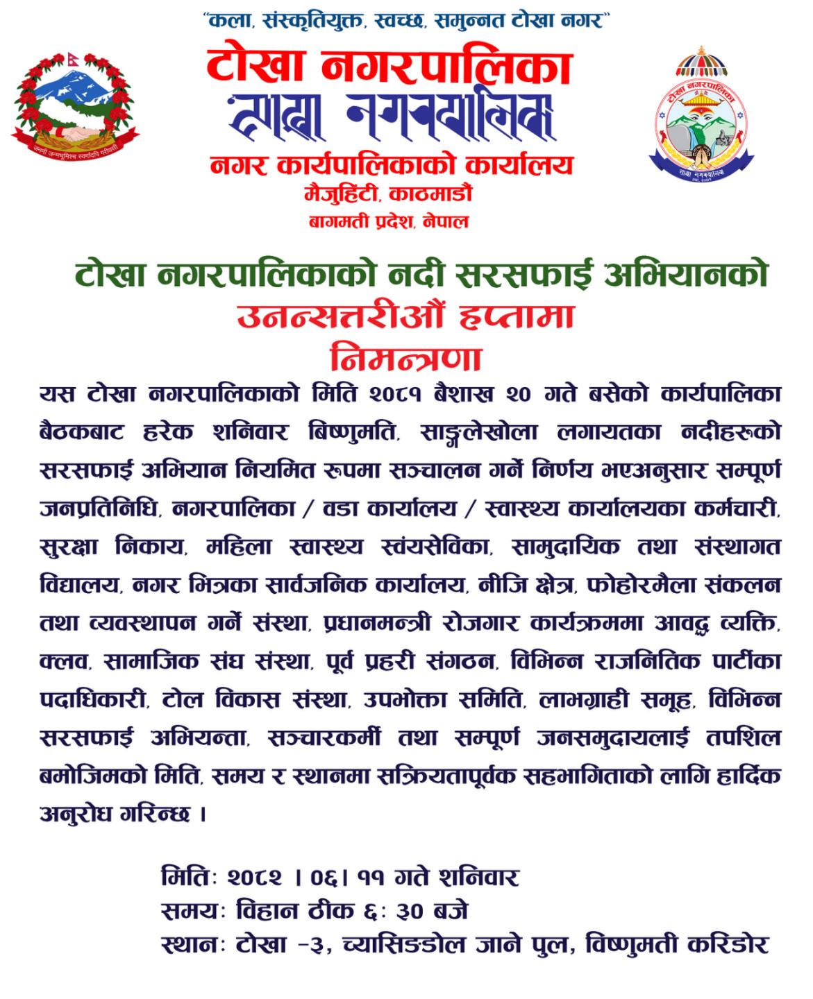 » नदी सरसफाईको ६९ औं हप्ताको कार्यक्रममा सहभागिता सम्बन्धमा