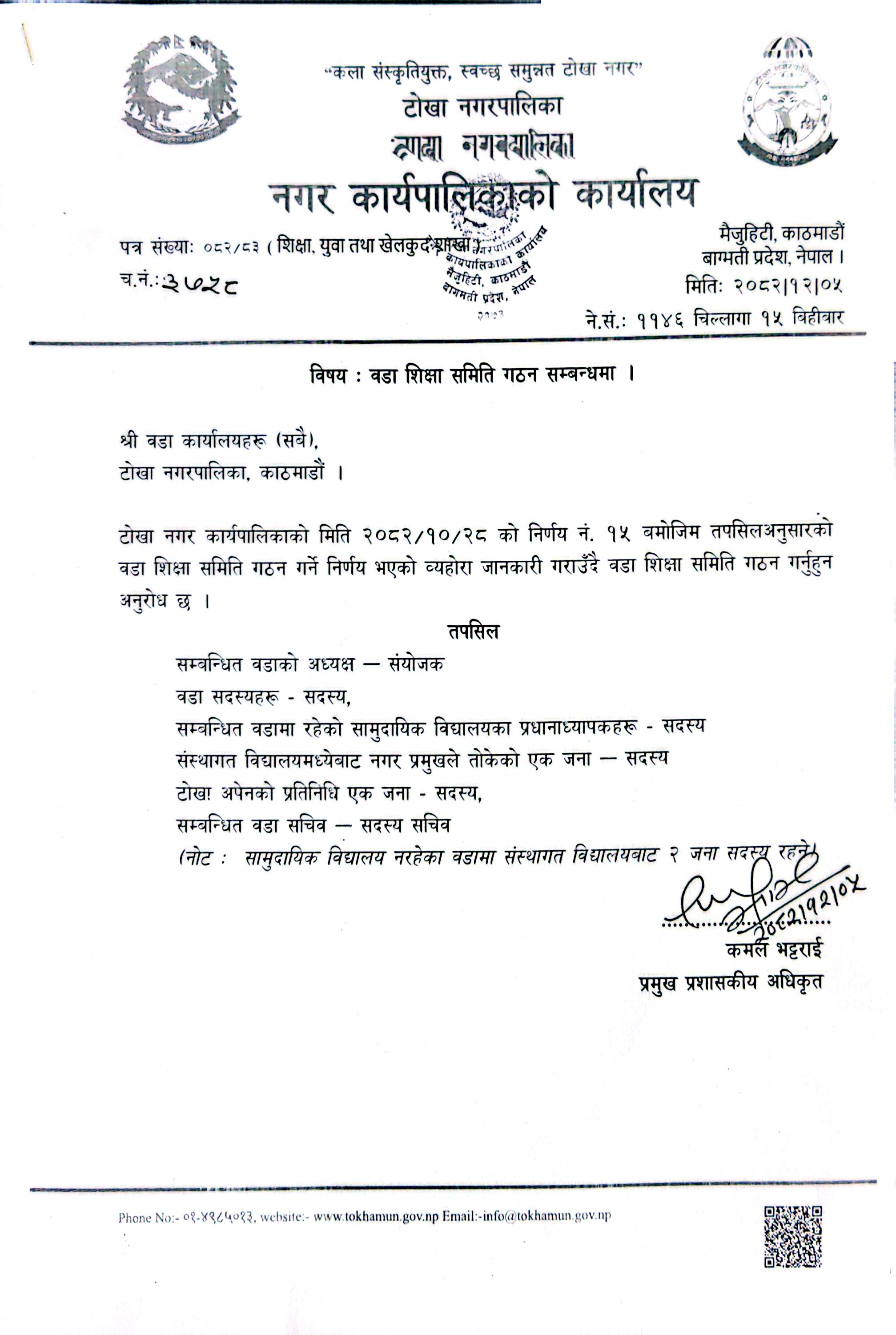 टोखा नगरपालिका, नगर कार्यपालिकाको कार्यालय