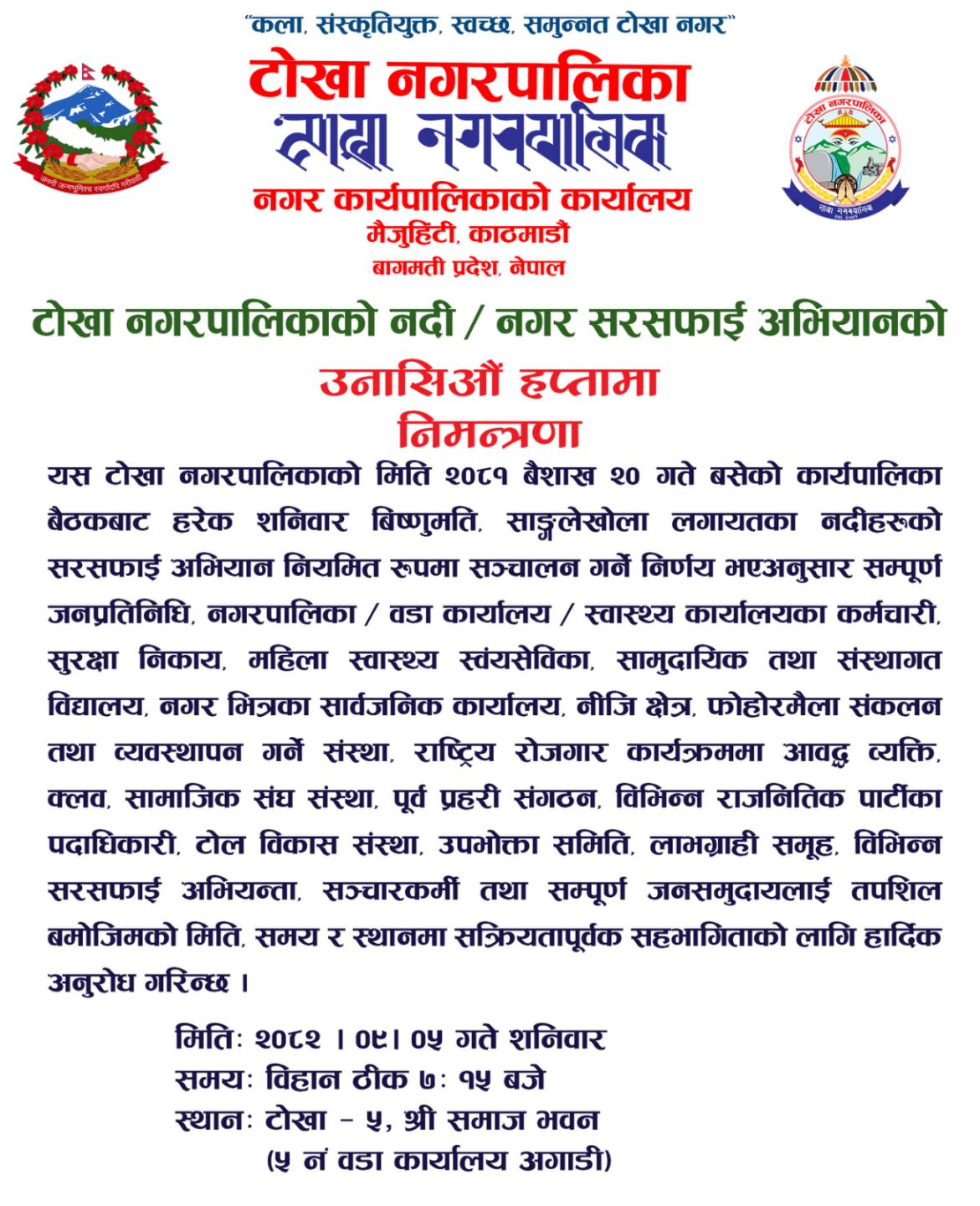 " कला संस्कृतियुक्त, स्वच्छ समुन्नत टोखा नगर "