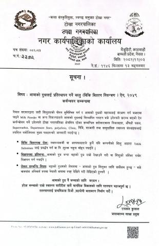 आमाको दूधलाई प्रतिस्थापन गर्ने वस्तु (बिक्री वितरण नियन्त्रण)ऐन, २०४९ कार्यन्वयन सम्बन्धमा