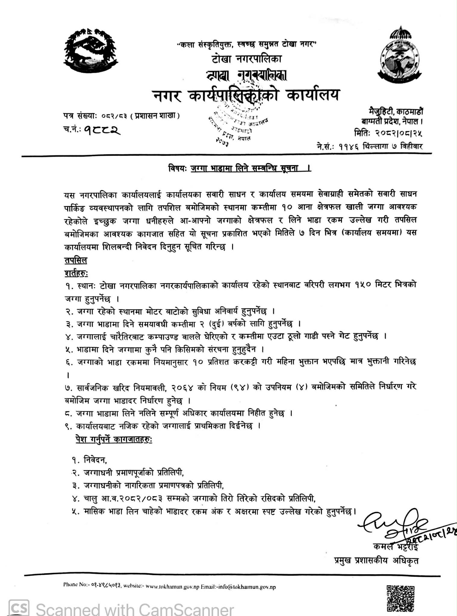 जग्गा भाडामा लिने सम्बन्धि सूचना