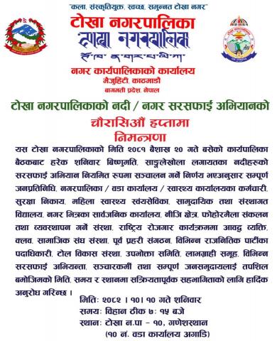 नदि सरसफाई अभियानको चौरासीऔं हप्तामा हार्दिक निमन्त्रणा