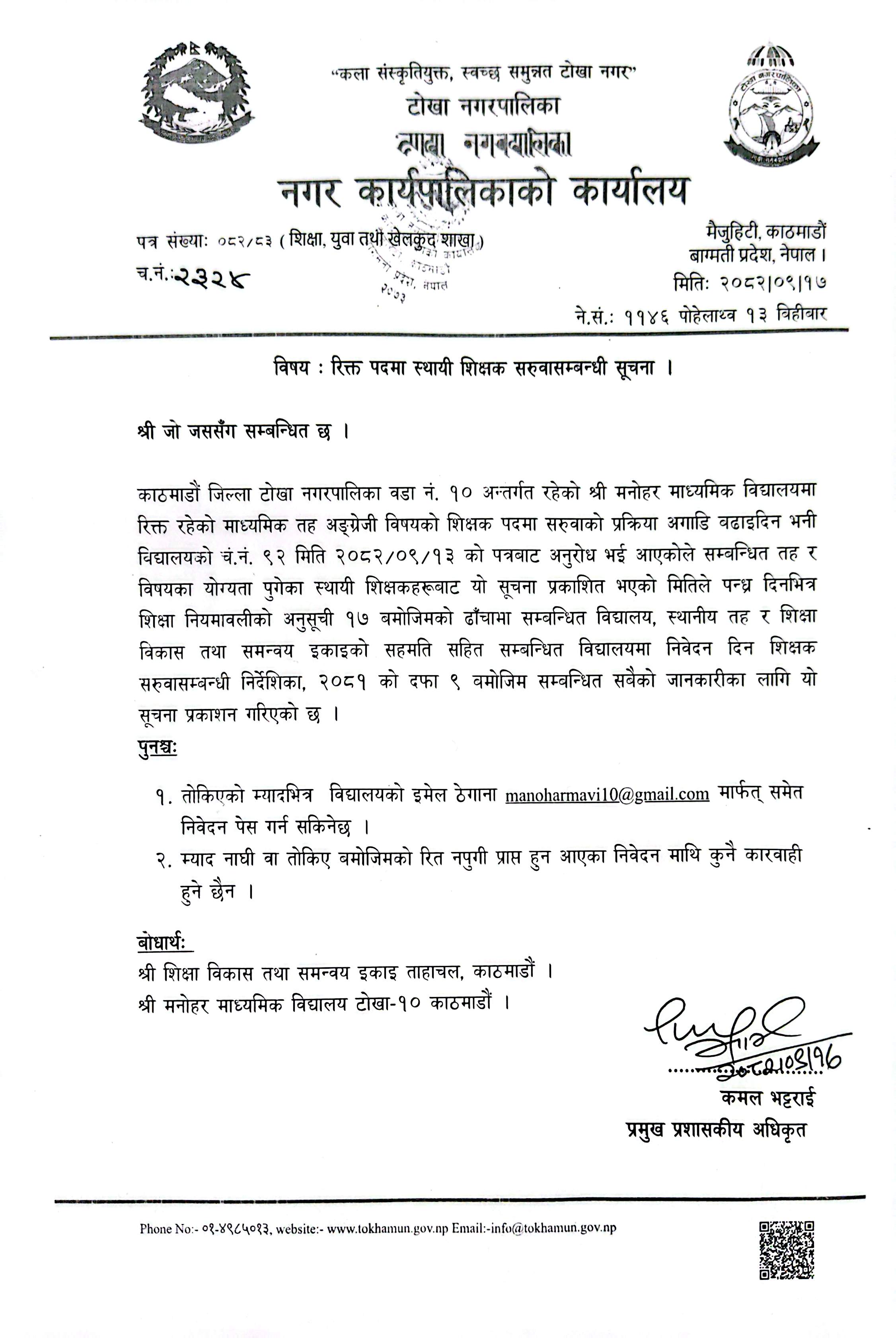 रिक्त पदमा स्थायी शिक्षक सरुवा सम्बन्धी सूचना