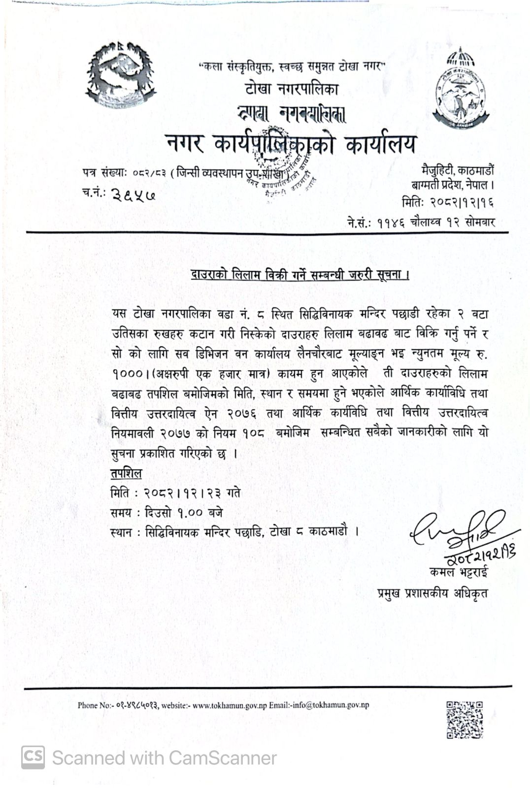 » दाउराको लिलाम बिक्री गर्ने सम्बन्धी जरुरी सूचना