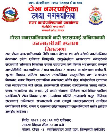 नदी सरसफाईको ६७ औं हप्ताको कार्यक्रममा सहभागिता सम्बन्धमा
