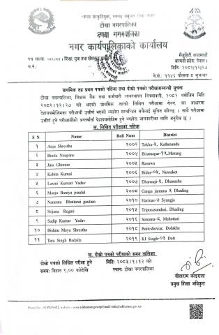 निम्न माध्यमिक तहको प्रथम पत्रको परीक्षाको नतिजा तथा दोस्रो पत्रको परीक्षा सम्बन्धी सूचना