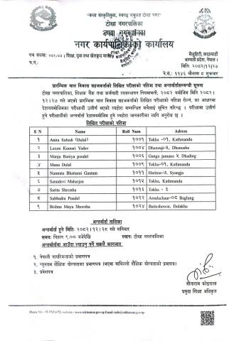 » प्रारम्भिक बाल विकास सहजकर्ताको लिखित परीक्षाको नतिजा तथा अन्तर्वार्ता सम्बन्धी सूचना