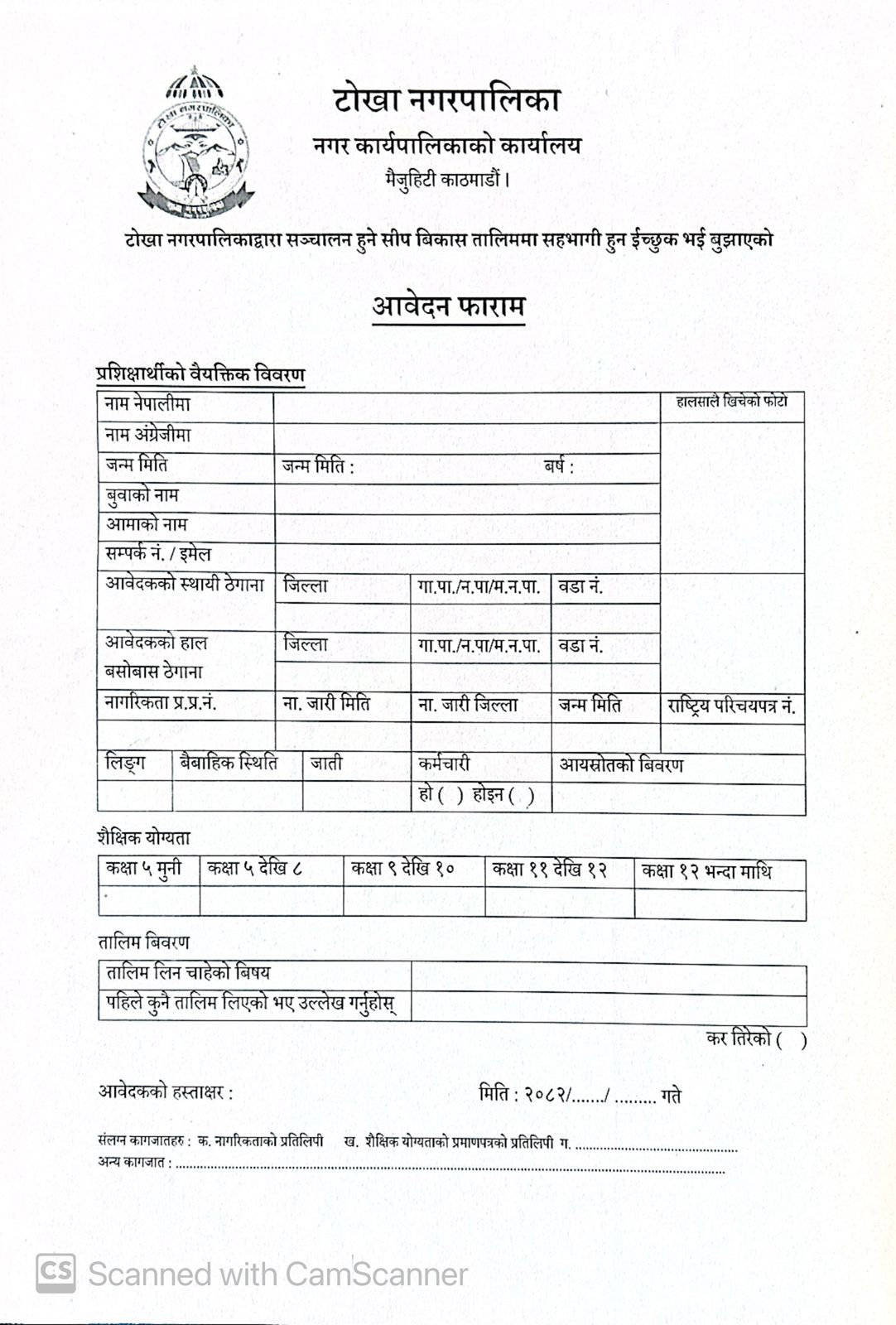 सिपमुलक तालिममा आवेदन दिने सम्बन्धी सूचना साथमा आवेदन फारम